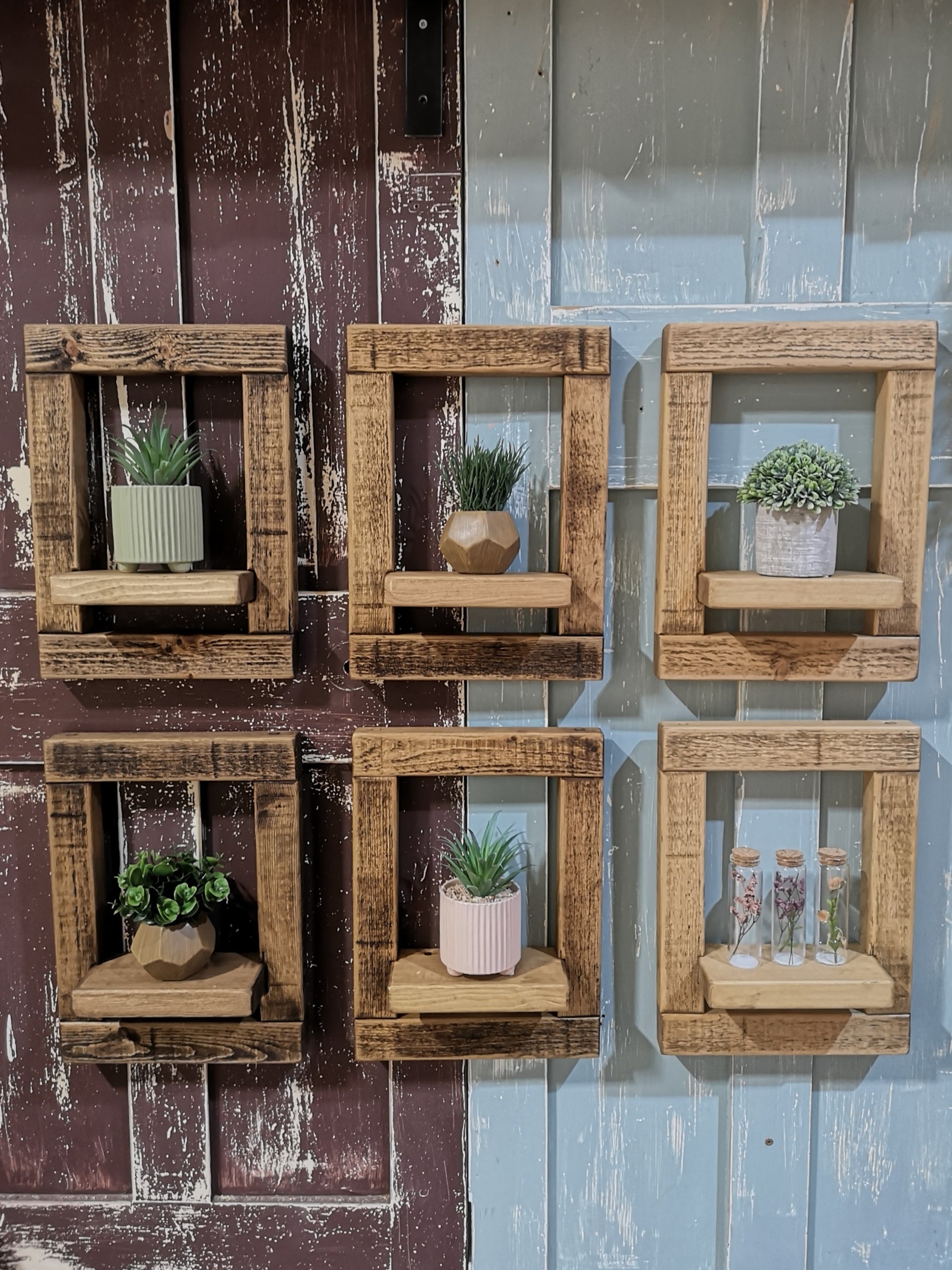 Crafted from our lovingly repurposed off-cuts, this plant and pretties shelf brings rustic charm and sustainability together. Perfect for shelves, mantelpieces, or as a heartfelt gift.